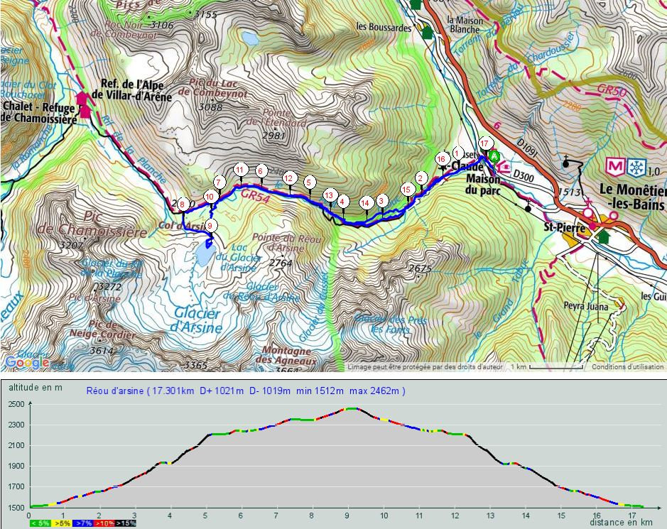 Ci-dessous la carte de notre parcours. Vous pouvez cliquer dessus pour accéder à une page qui vous permettra de télécharger la trace. L'aller-retour totalise 17km et 1000 m de D+. Il est largement faisable à la journée.