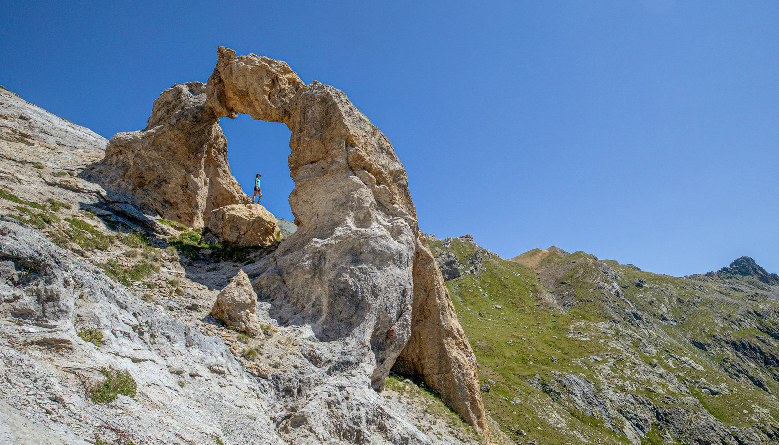 Le bivouac plié tardivement (comme tous les jours en fait), nous mettons le cap sur les lacs de Ténibre. Nous arrivons rapidement au refuge de Vens pour une pause repas/orangina/coca/gâteau aux myrtilles, après un arrêt au pied (et au-dessus) de la fameuse arche de Tortisse.