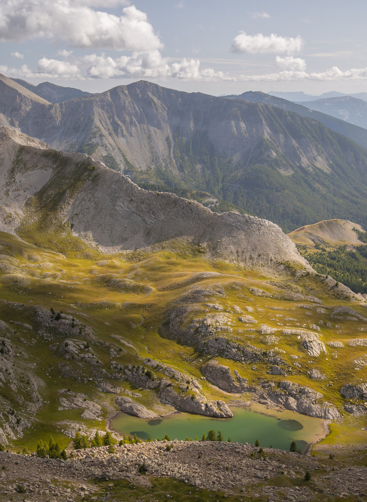 Le matin, nous jetons un coup d’œil aux applis météo… à priori plus d’épisode de ce genre jusqu’à la fin du séjour, aleluila. Sereins, nous repartons donc direction le col de l’Encombrette non sans un arrêt évidemment au bord du très beau lac d’Allos pour y faire le tour. En haut, le panorama est splendide, avec au choix vue sur le lac d’un côté ou sur le charmant cirque de l’Encombrette de l’autre. Un très joli coucher de soleil et un sympathique lever de soleil plus tard, nous repartons pour une troisième et dernière boucle du côté du Vallon de Laverq La rumeur dit également qu’un drame se serait produit ce matin du 2 Aout 2021. Il se murmure effectivement qu’un objectif photo (d’une valeur complètement indécente et accessoirement quasiment neuf) serait tombé du haut du col de l’Encombrette et n’aurait pas survécu. Cet épisode encore douloureux ne sera pas intégré au récit. RIP.